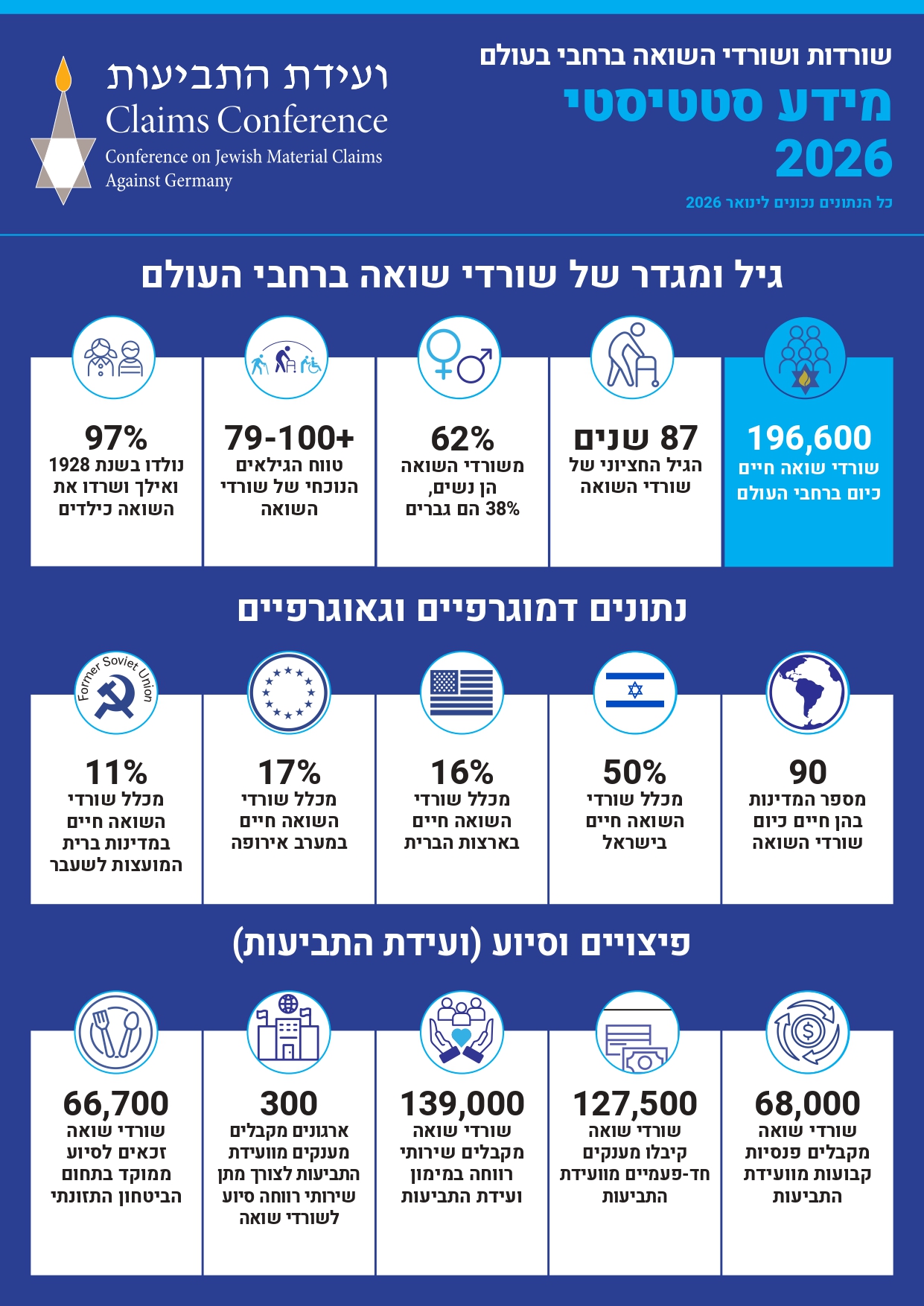 למידע נוסף: www.claimscon.org/Holocaust-survivor-data-2026